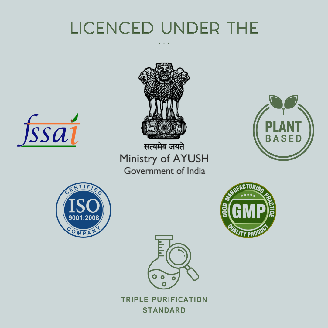 Nuvedic guarantees quality and purity by ensuring their products are licensed, free from harmful chemicals, lab-tested, 100% pure, cruelty-free, and adhere to GMP quality standards.